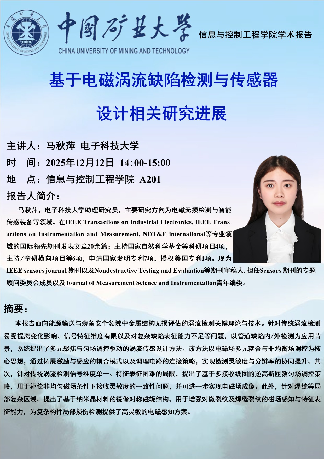 学术报告(12月12日):基于电磁涡流缺陷检测与传感器设计相关研究进展