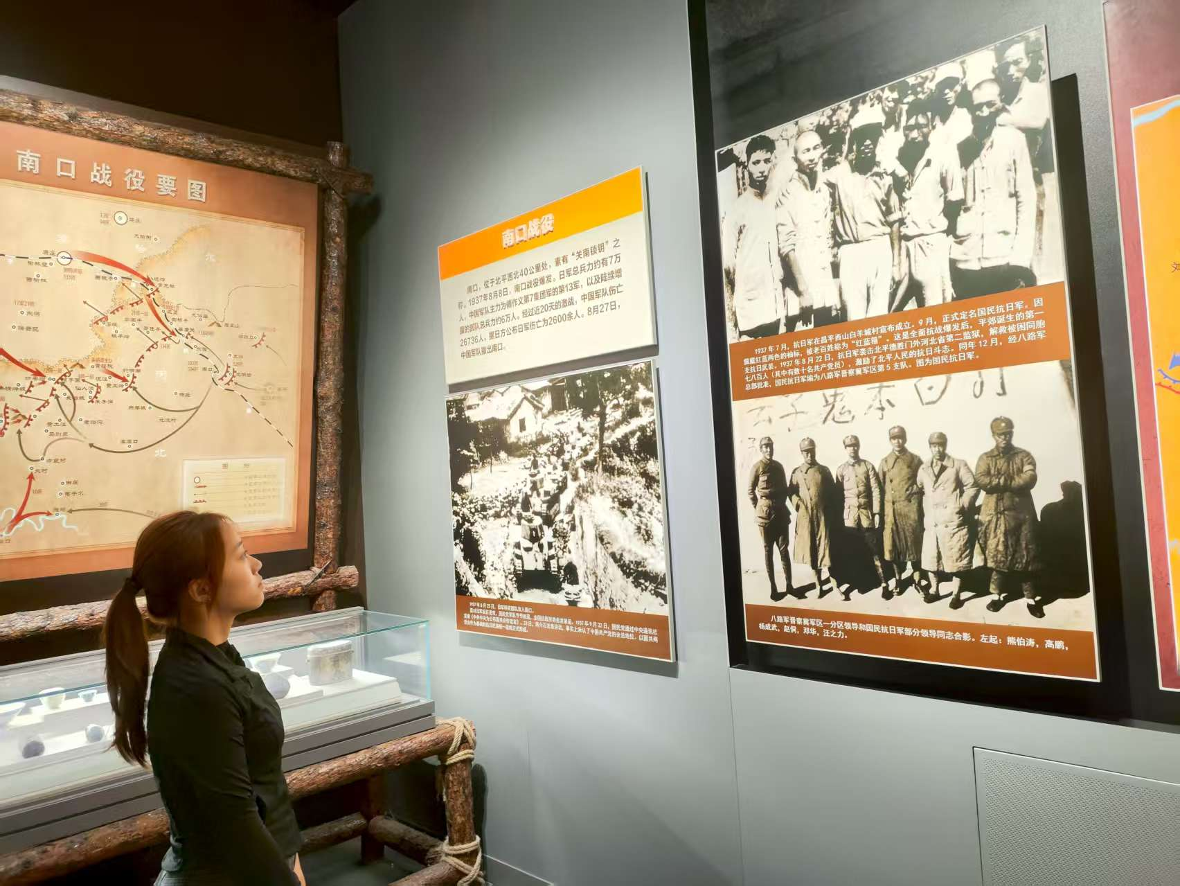 平北抗日战争纪念馆是纪念1933年至1945年平北军民抗日斗争的重要基地。成员有序参观“抗战爆发”“根据地创建与发展”“艰苦卓绝的军事斗争”“军民鱼水情”等展区。馆内300余件文物(战士武器、群众支前工具、战地书信等)直观还原历史,展现了平北军民在日军封锁下,以简陋装备坚守抗战的艰难历程。