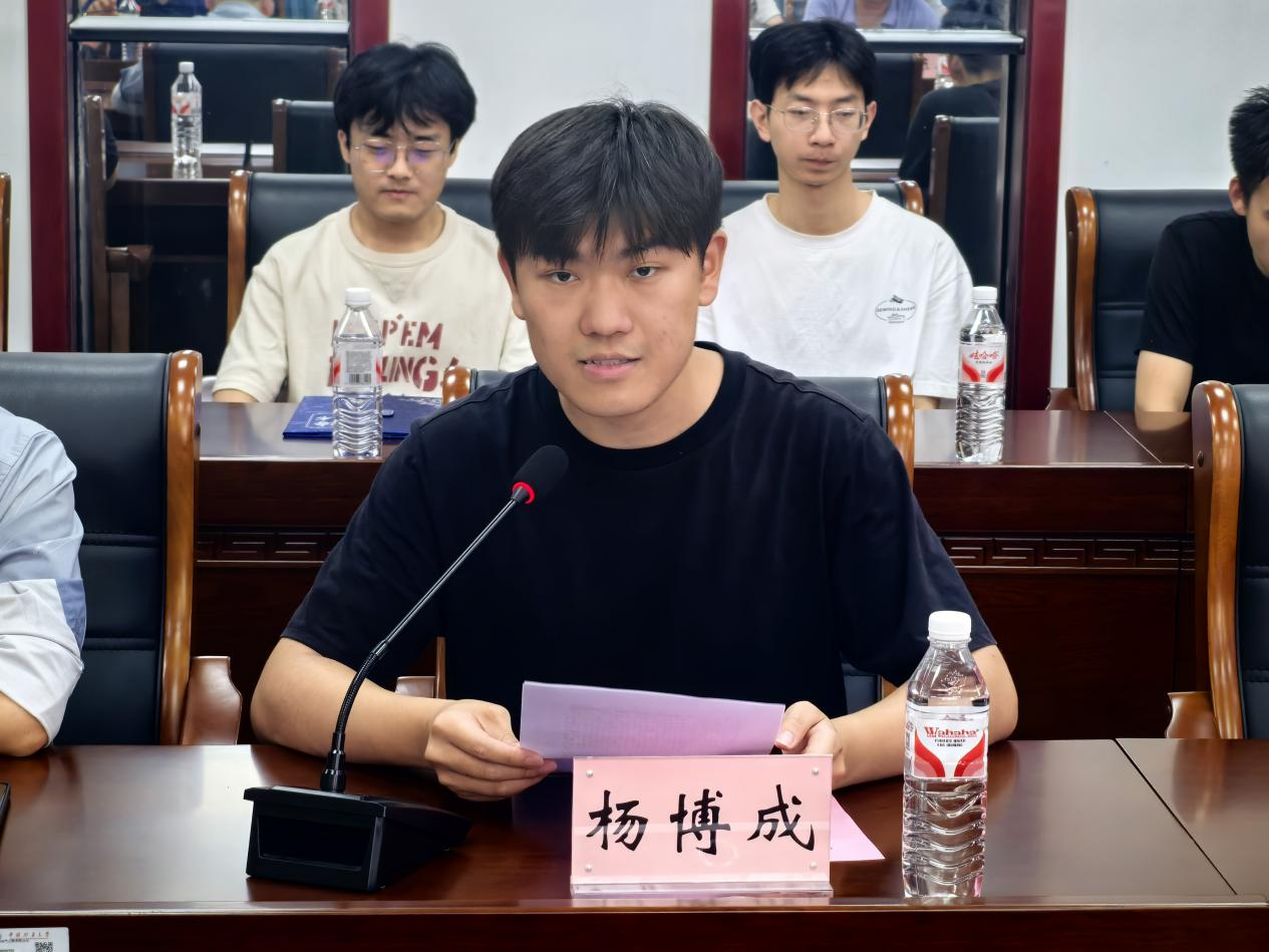 陈平宣读了学院2025届毕业生校友工作联络员聘任通知,与会领导颁发了校友工作联络员聘书。电子信息类2021-7班杨博成同学作为校友工作联络员代表作了发言。