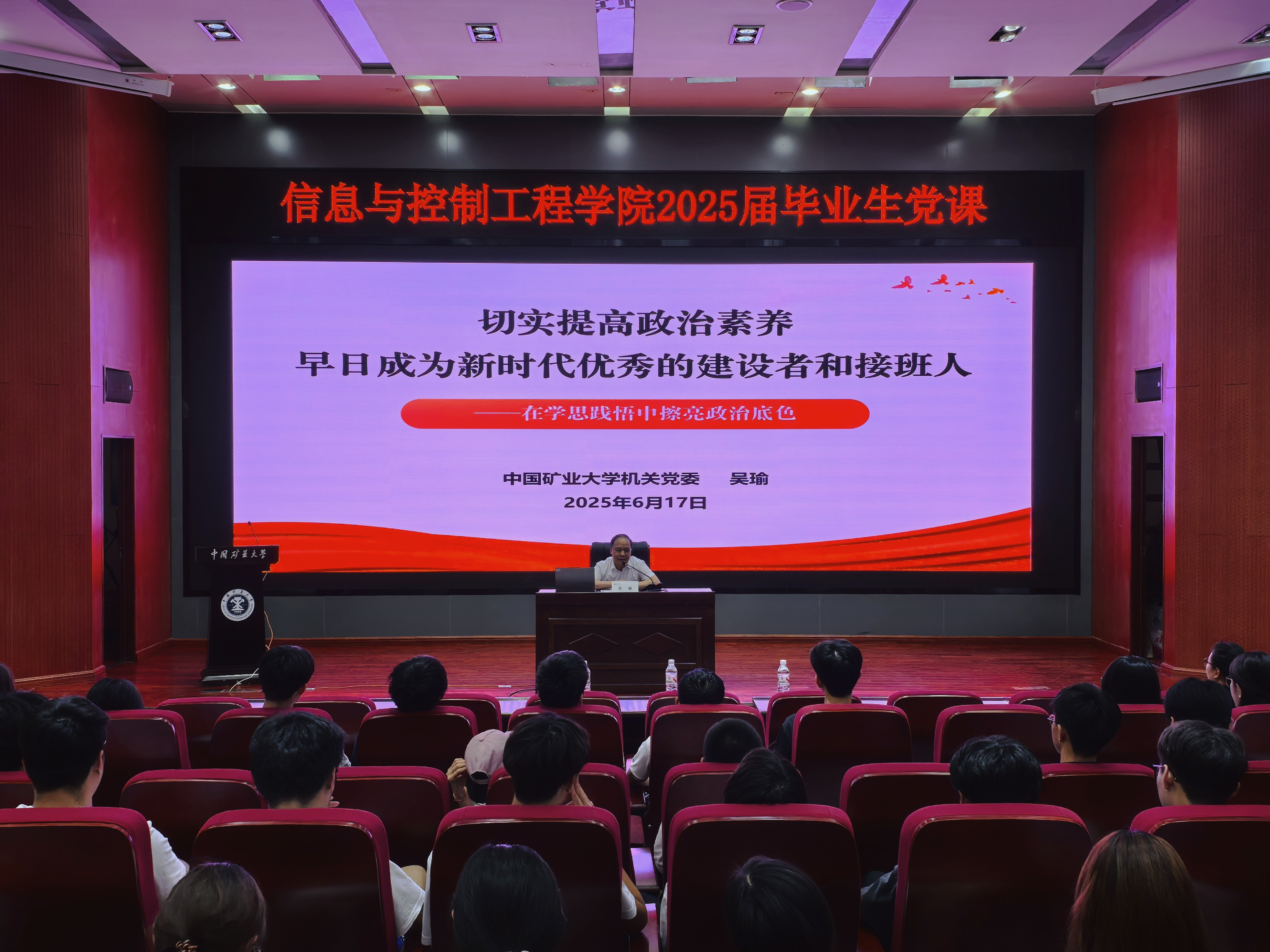 在学院楼A101报告厅组织召开2025届毕业生党员专题党课。本次党课由学校原机关党委书记吴瑜主讲,毕业班辅导员及全体2025届毕业生党员共同参与。吴瑜以“切实提高政治素养,早日成为新时代优秀的建设者和接班人——在学思悟践中擦亮政治底色”为题,为毕业生党员讲授了一堂深刻的思想教育课。