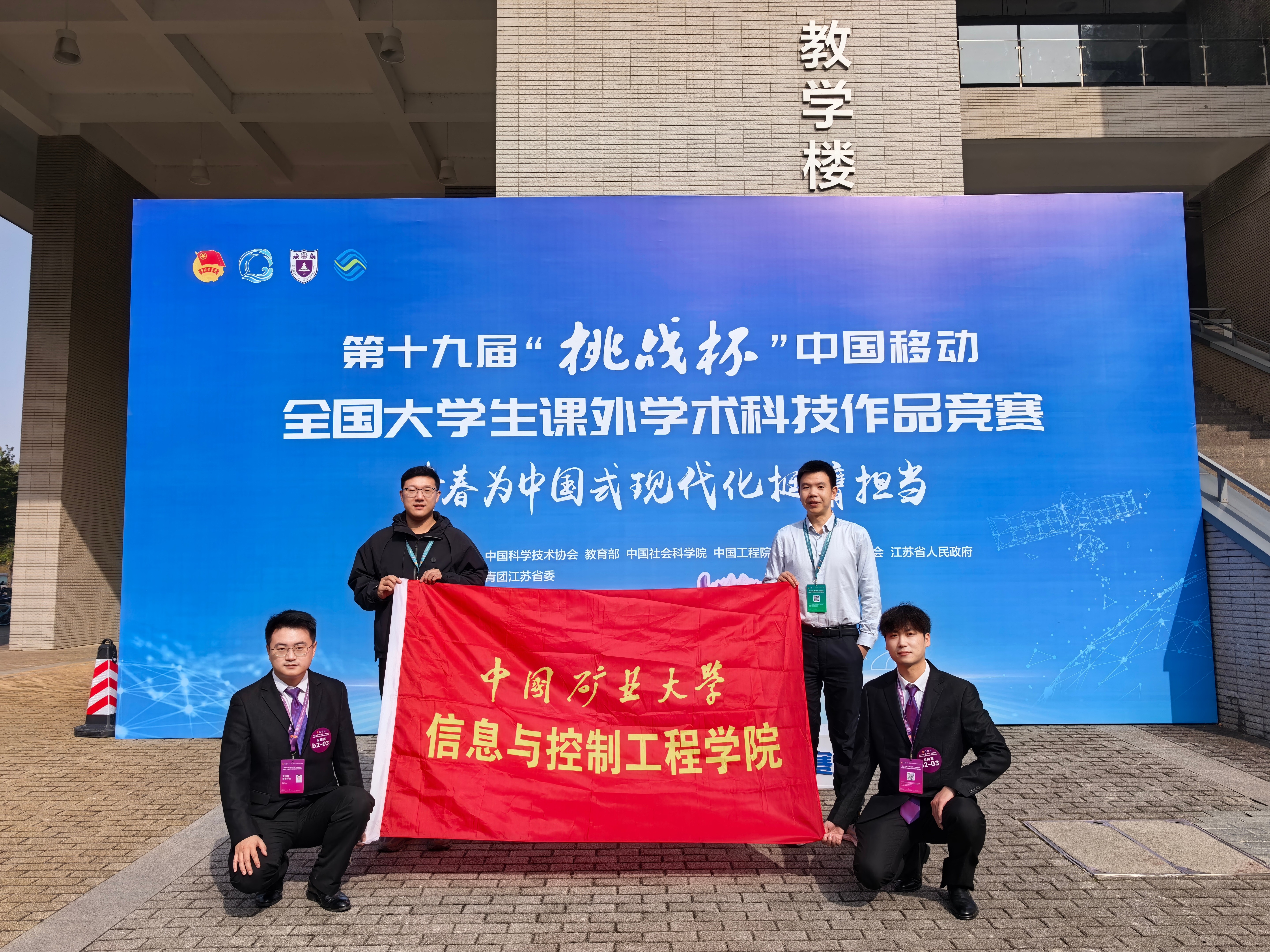 10月31日至11月3日,第十九届“挑战杯”中国移动全国大学生课外学术科技作品竞赛在南京大学举行。由胡青松、陈国良和王雪松老师指导,学生成元勋、娄智波等设计制作的参赛作品《AI驱动的矿井无人驾驶通感共融关键技术与应用研究》荣获“人工智能+”专项赛全国二等奖。