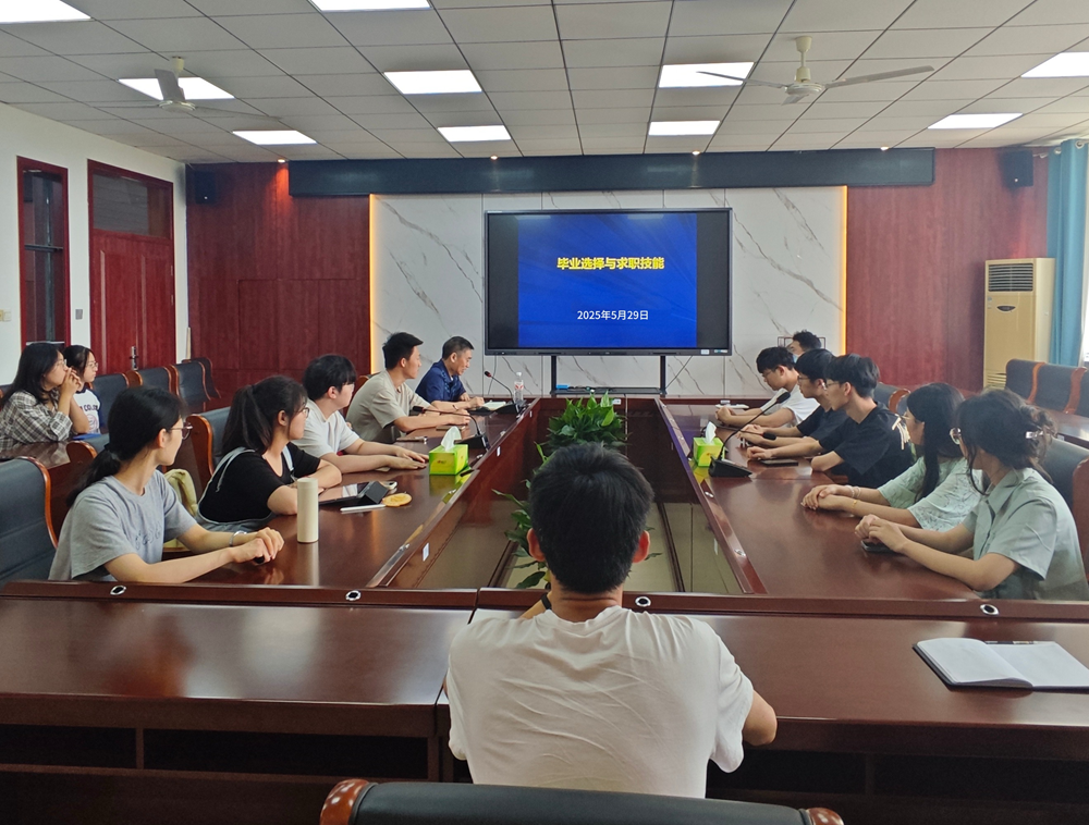 关工委委员葛如峰应邀作“毕业选择与求职技能”专题讲座。讲座由2022级辅导员主持,2022级部分学生代表现场聆听。
